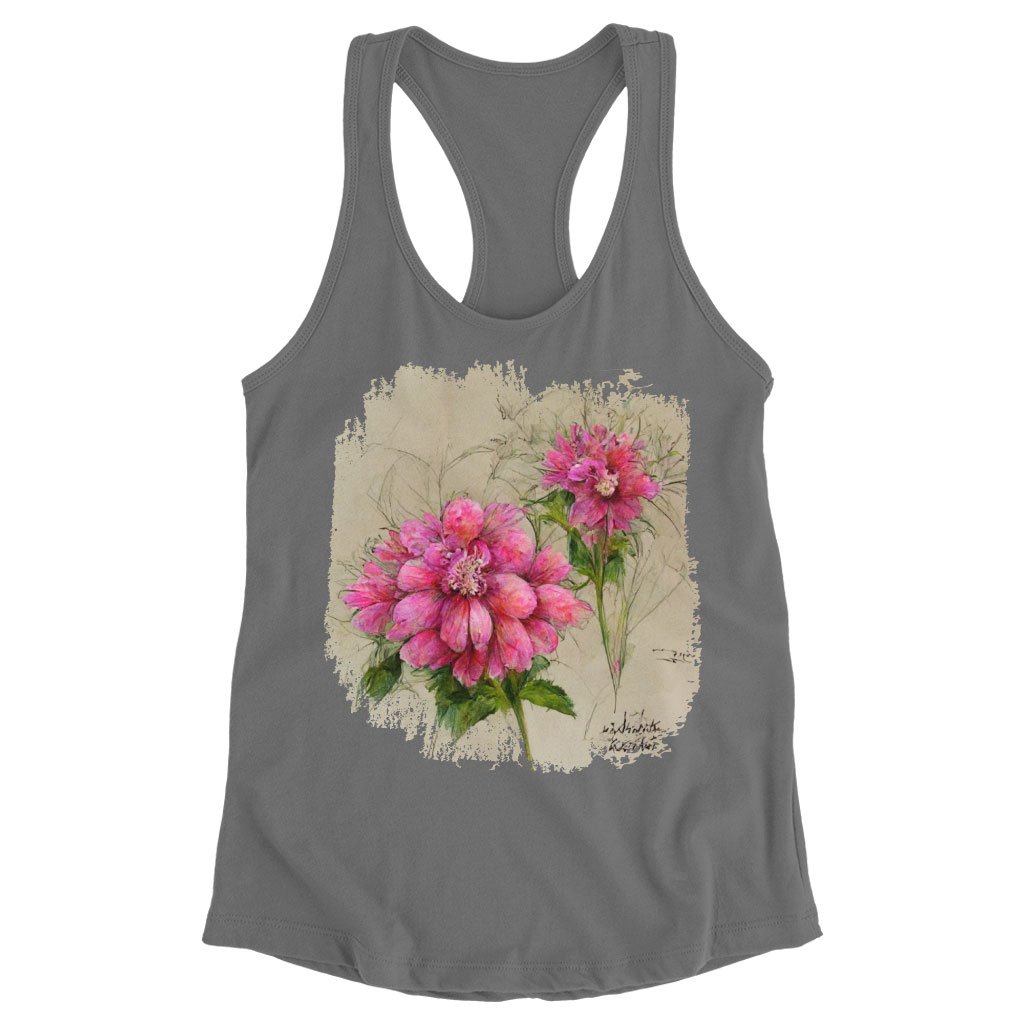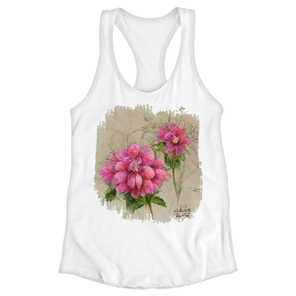 Pink Dahlia Flower Racerback Tank – Painted Tank – Graphic Workout Tank