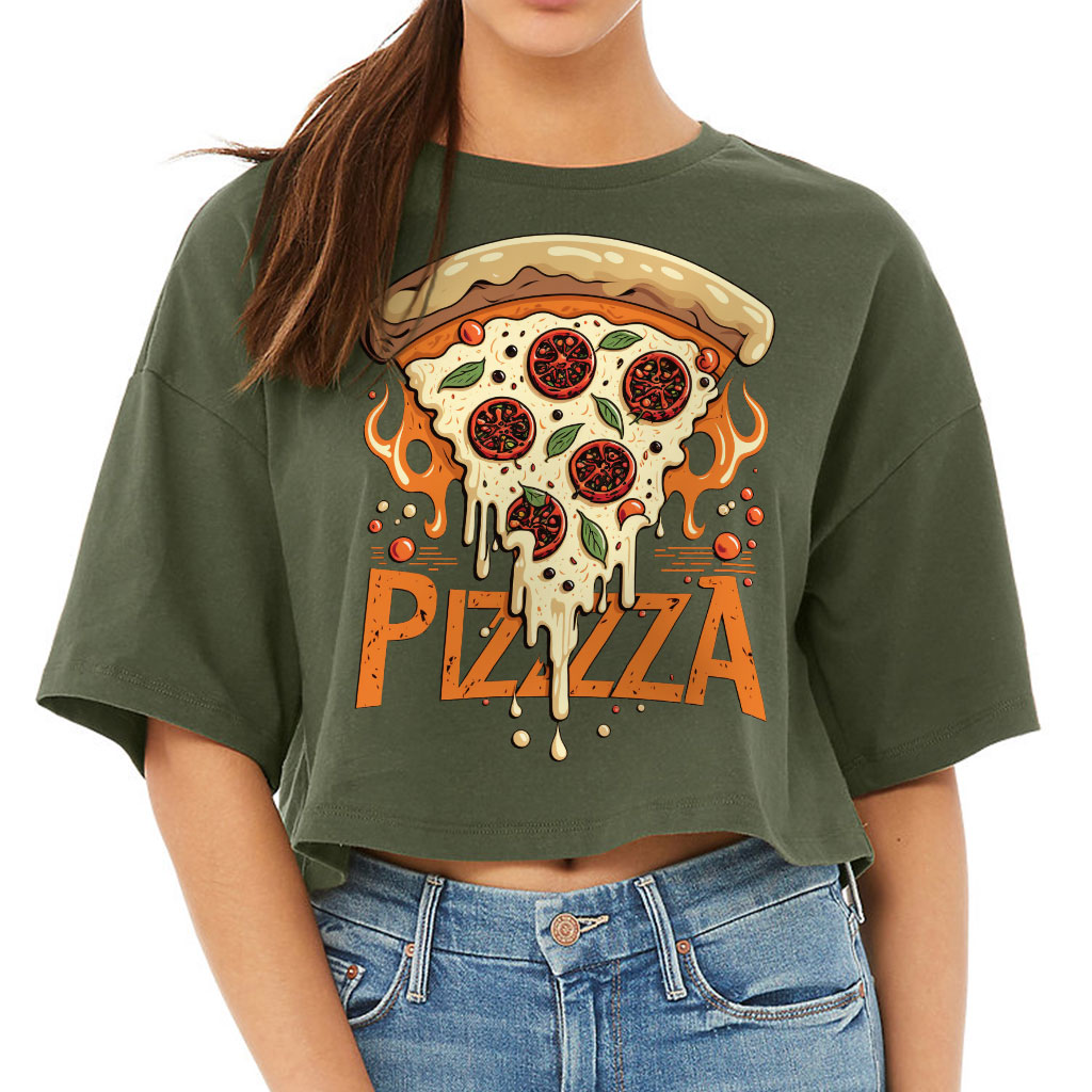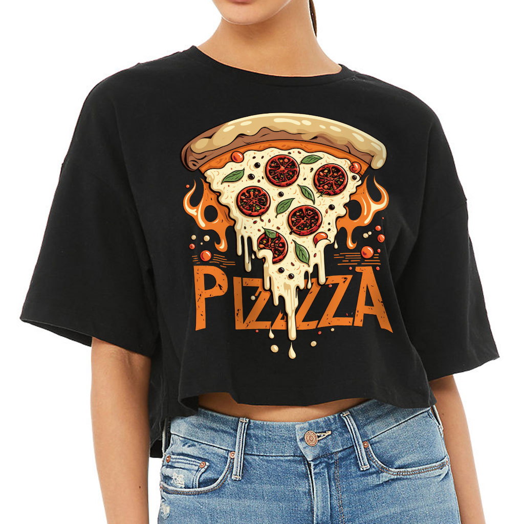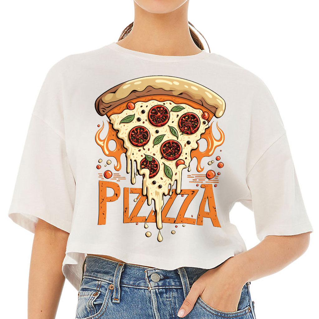 Pizza Graphic Women’s Crop Tee Shirt – Trendy Cropped T-Shirt – Themed Crop Top