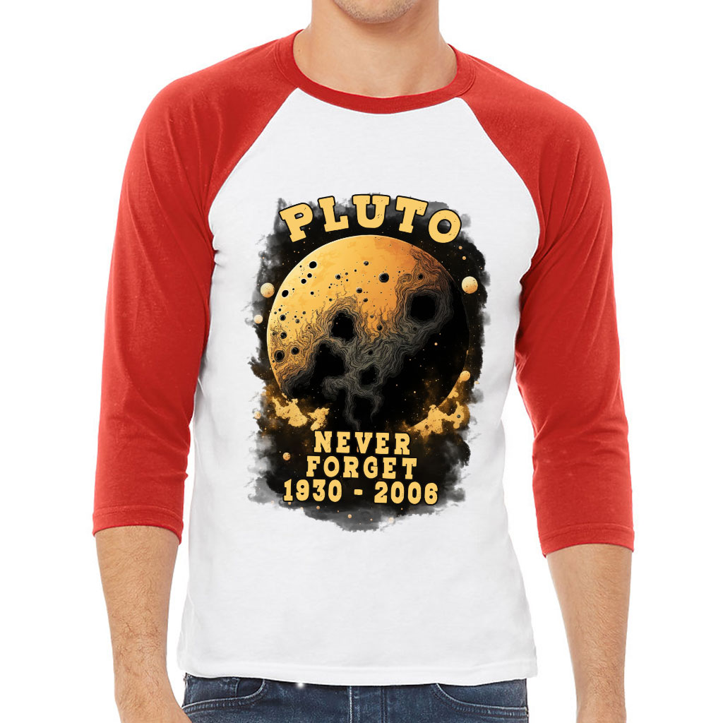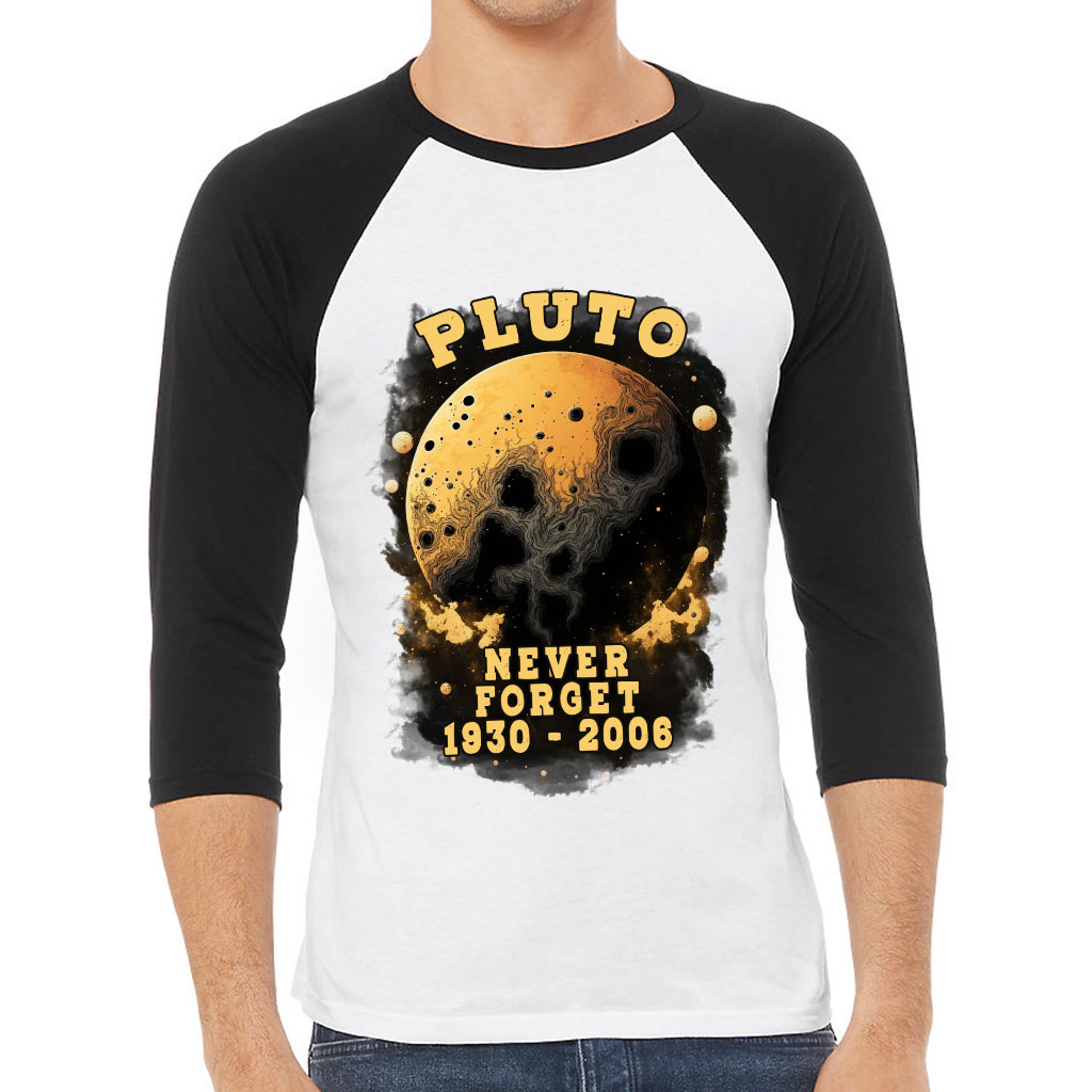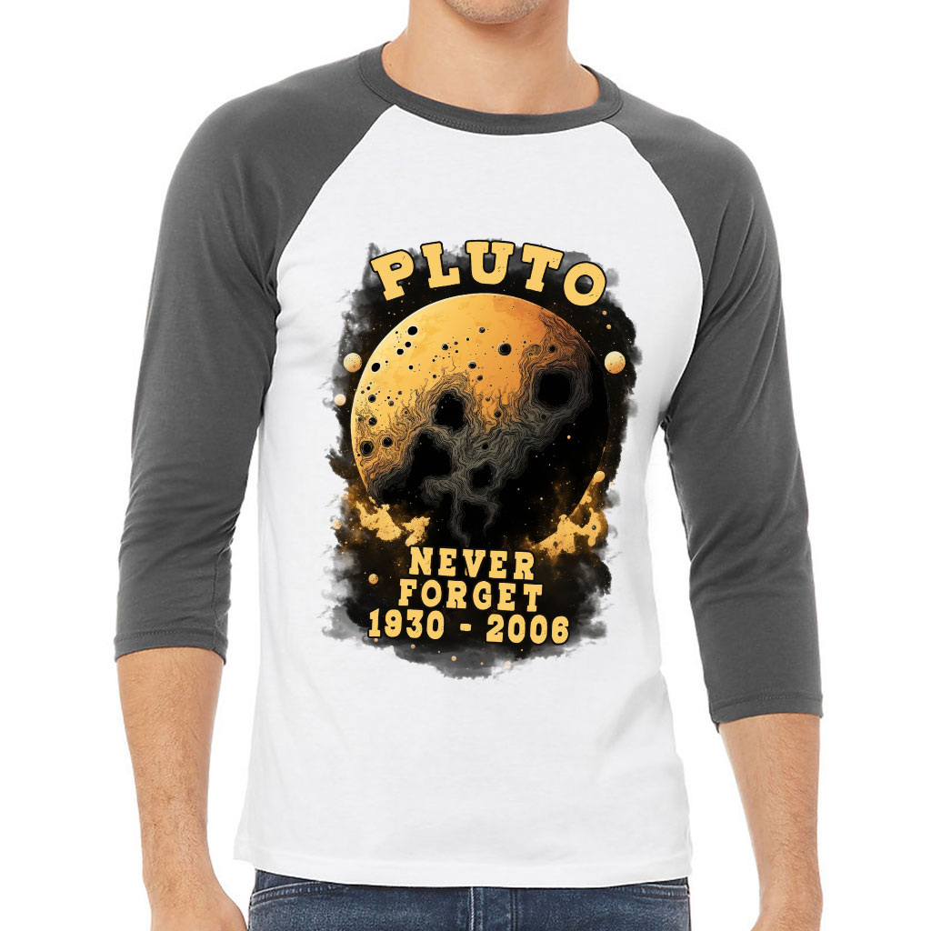 Pluto Never Forget Baseball T-Shirt is proudly made with 7x less water than average manufacturers,