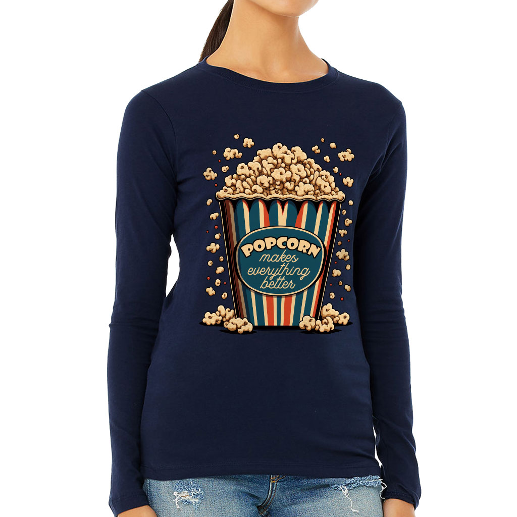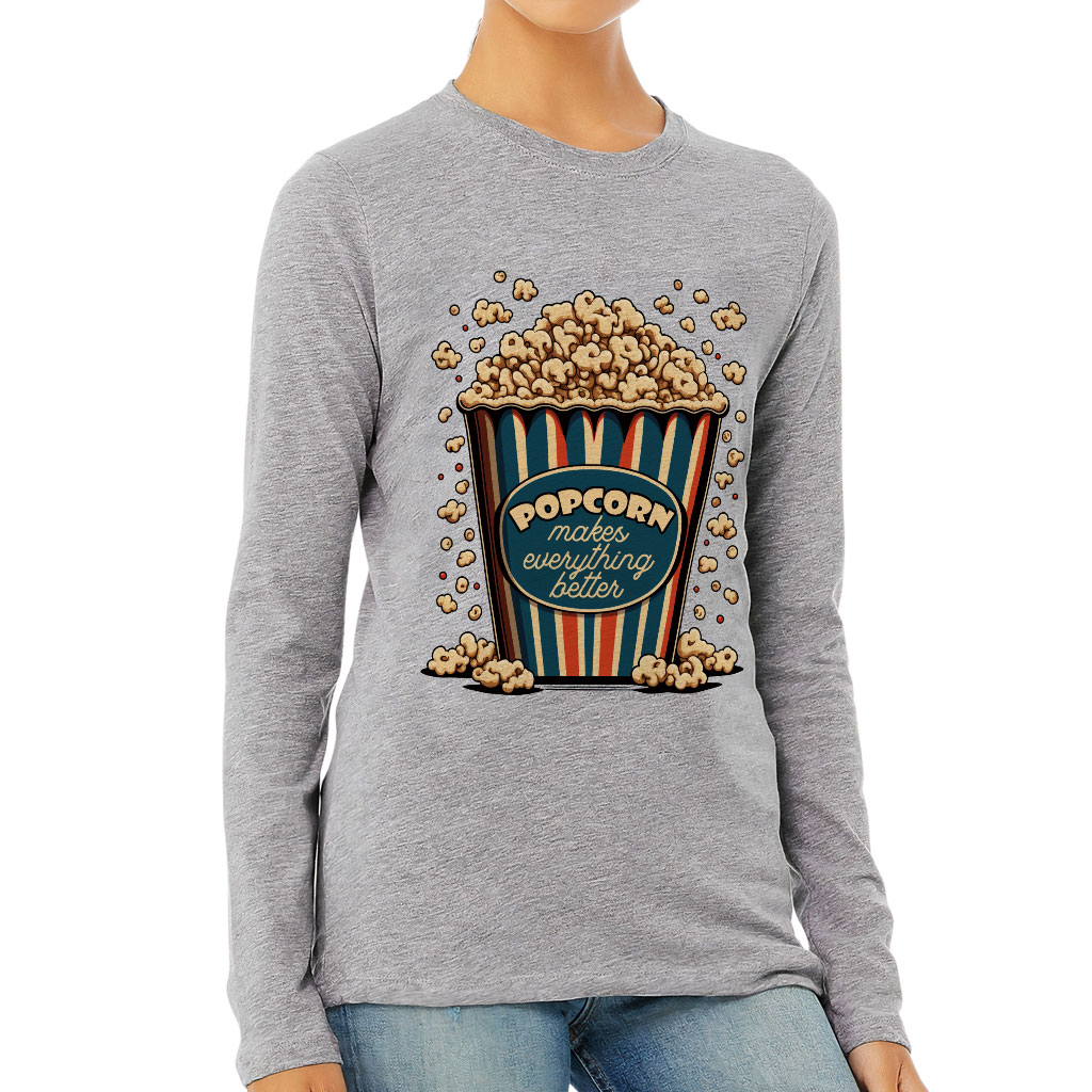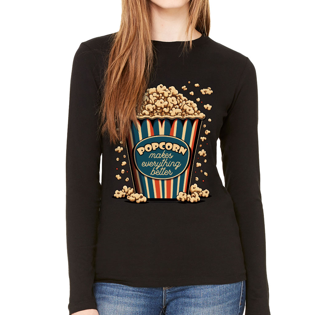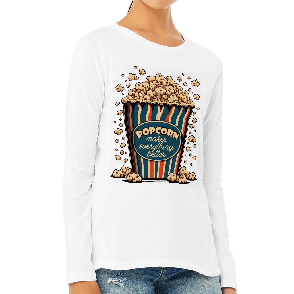 Popcorn Women’s Long Sleeve T-Shirt – Funny Design Long Sleeve Tee – Printed T-Shirt