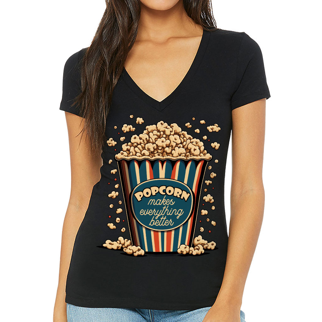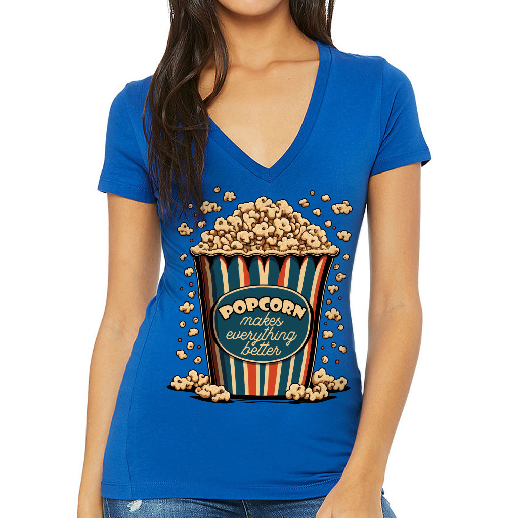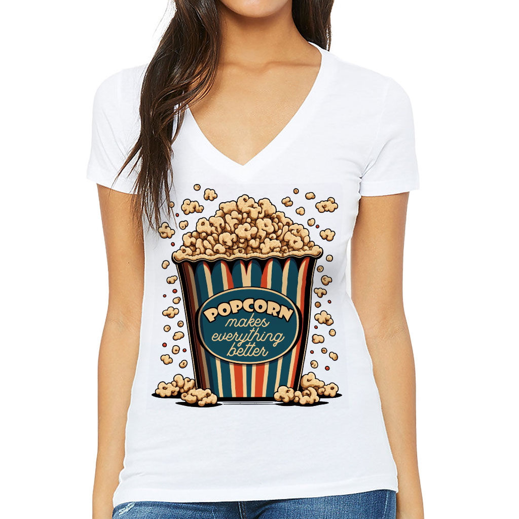 Popcorn Women’s V-Neck T-Shirt – Funny Design V-Neck Tee – Printed T-Shirt