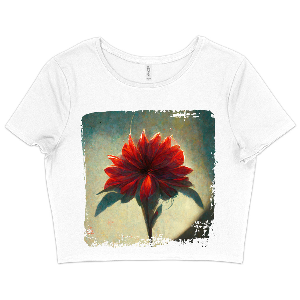 Red Dahlia Flower Women’s Cropped T-Shirt – Art Crop Top – Graphic Crop Tee Shirt