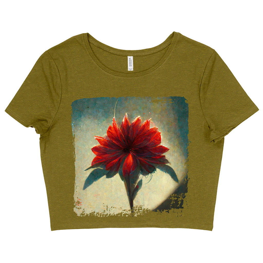 See why people love Red Dahlia Flower Women’s Cropped T-Shirt – Art Crop Top – Graphic Crop Tee Shirt