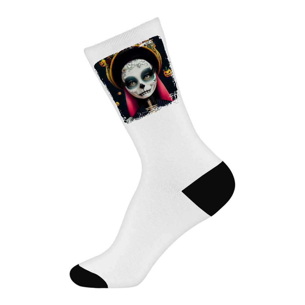 Skeleton Art Socks – Cartoon Girl Novelty Socks – Printed Crew Socks