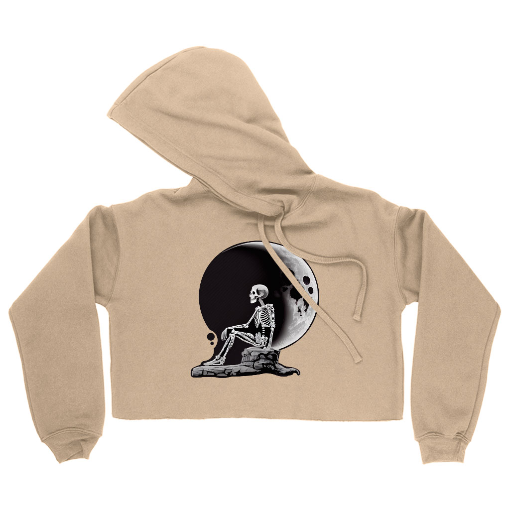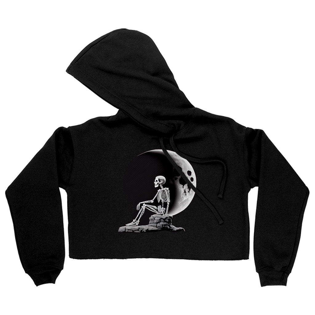 Skeleton Design Women’s Cropped Hoodie is proudly made with 7x less water than average manufacturers, in recycle-friendly facilities that also guarantee zero sweatshop conditions. Moon is designed and printed in California.