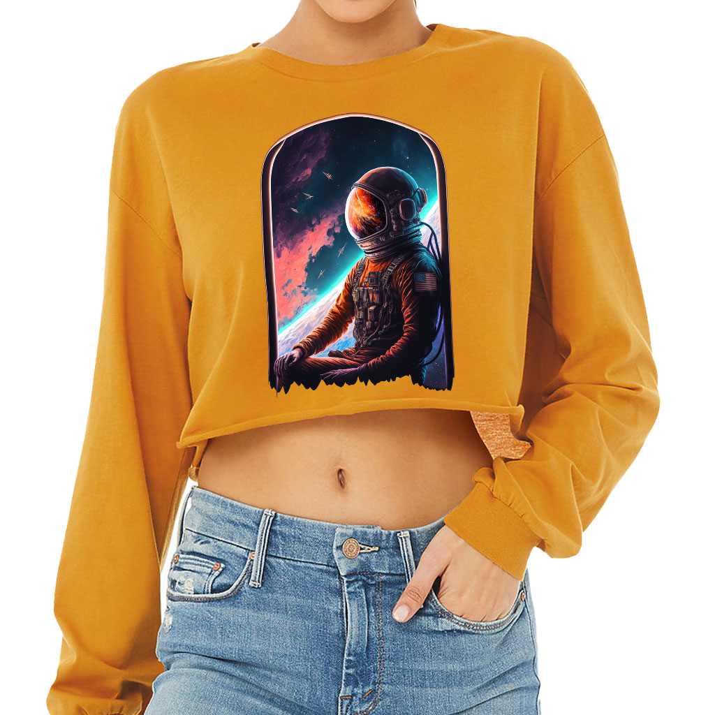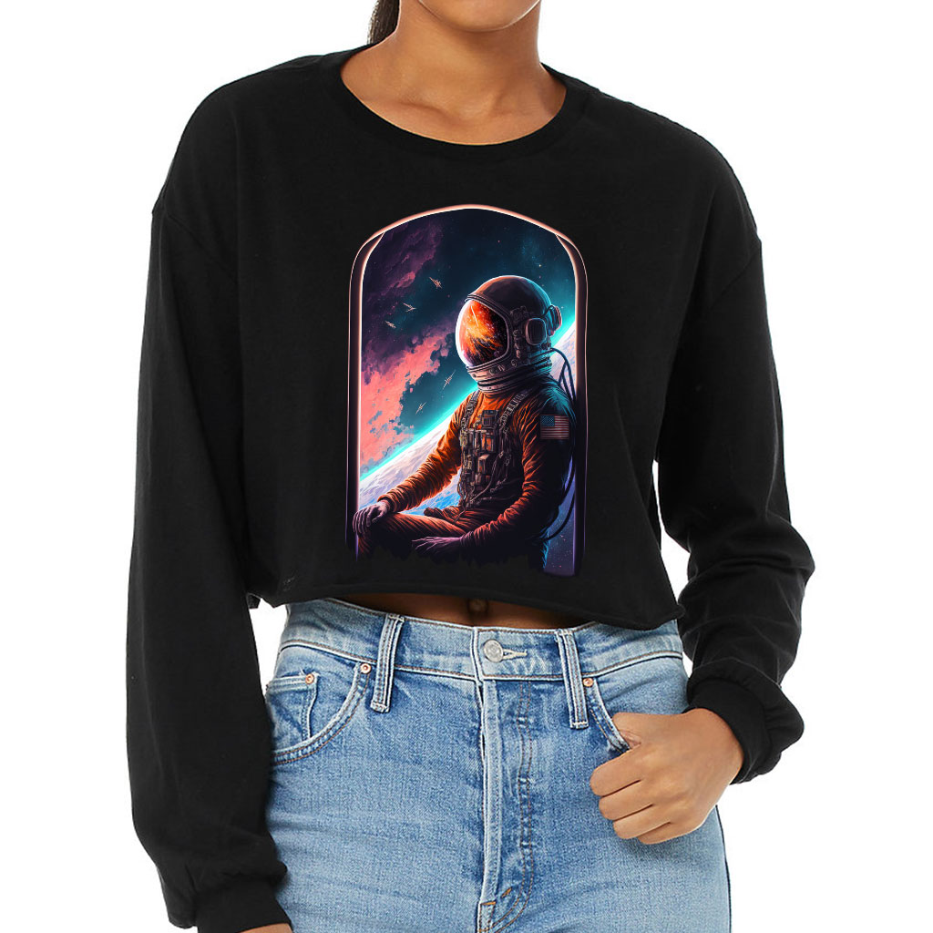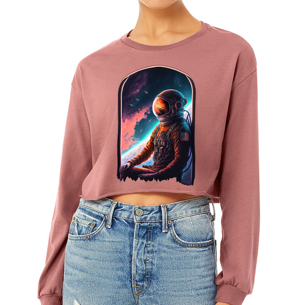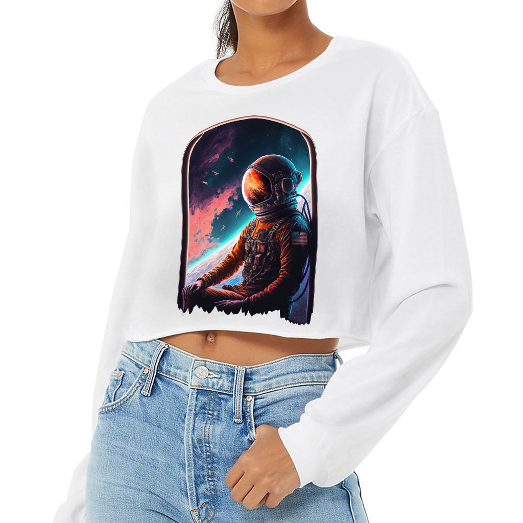 Space Astronaut Cropped Long Sleeve T-Shirt