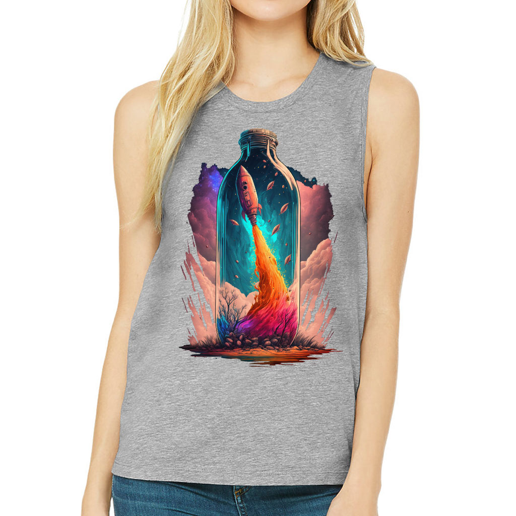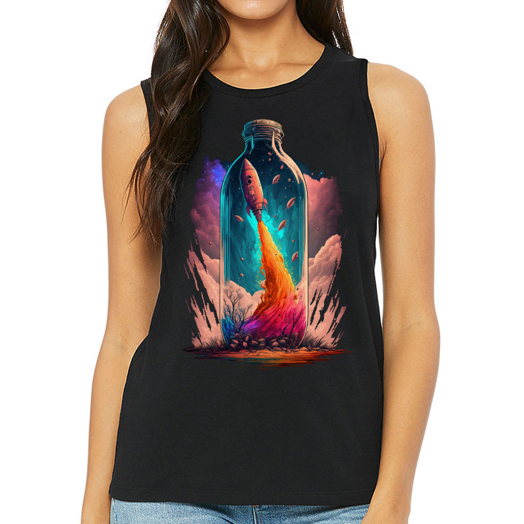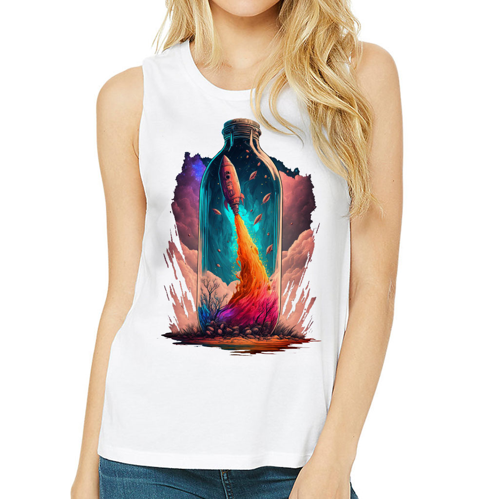 Spaceship Women’s Muscle Tank is made from high-quality materials. The soft fabric fits perfectly to the body and suits any type of figure. Our products will make your everyday comfortable, as well as add charm to your image and emphasize your style.