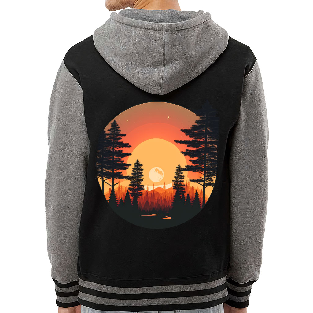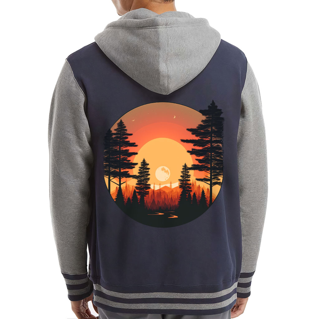 Sunset Design Varsity Hoodie – Forest Print Zip Hoodie – Best Graphic Hooded Sweatshirt