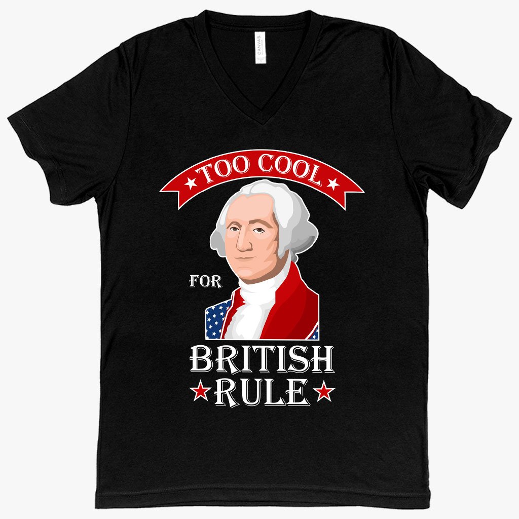 V-Neck Too Cool for British Rule T-Shirt – George Washington T-Shirt – Funny Independence Day T-Shirts