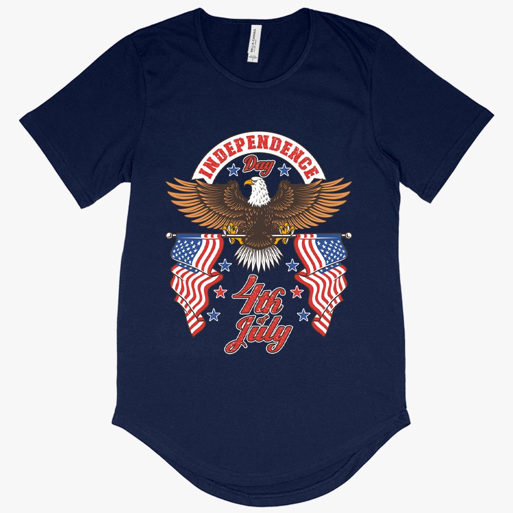 Men’s Independence Day 4th of July T-Shirt with Curved Hem – Independence Day T-Shirts – Patriotic USA T-Shirt