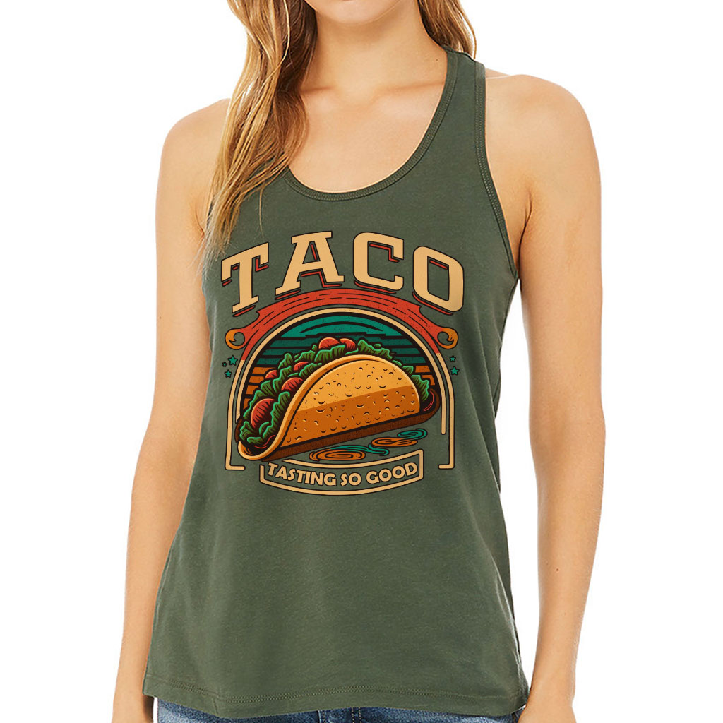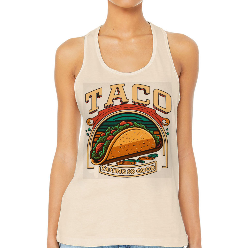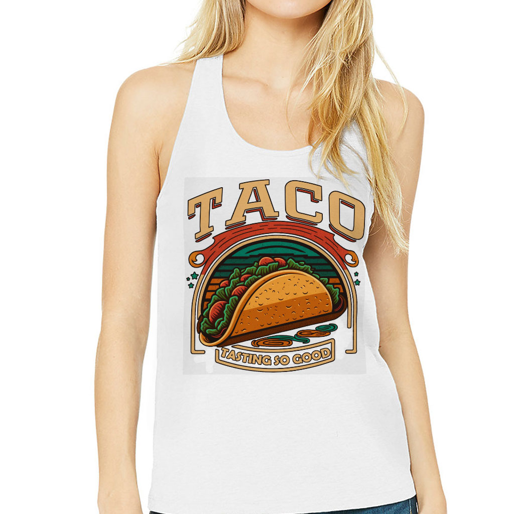 Taco Print Women’s Racerback Tank – Food Tank Top – Cool Graphic Workout Tank
