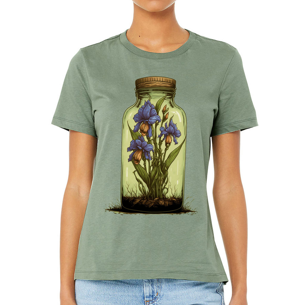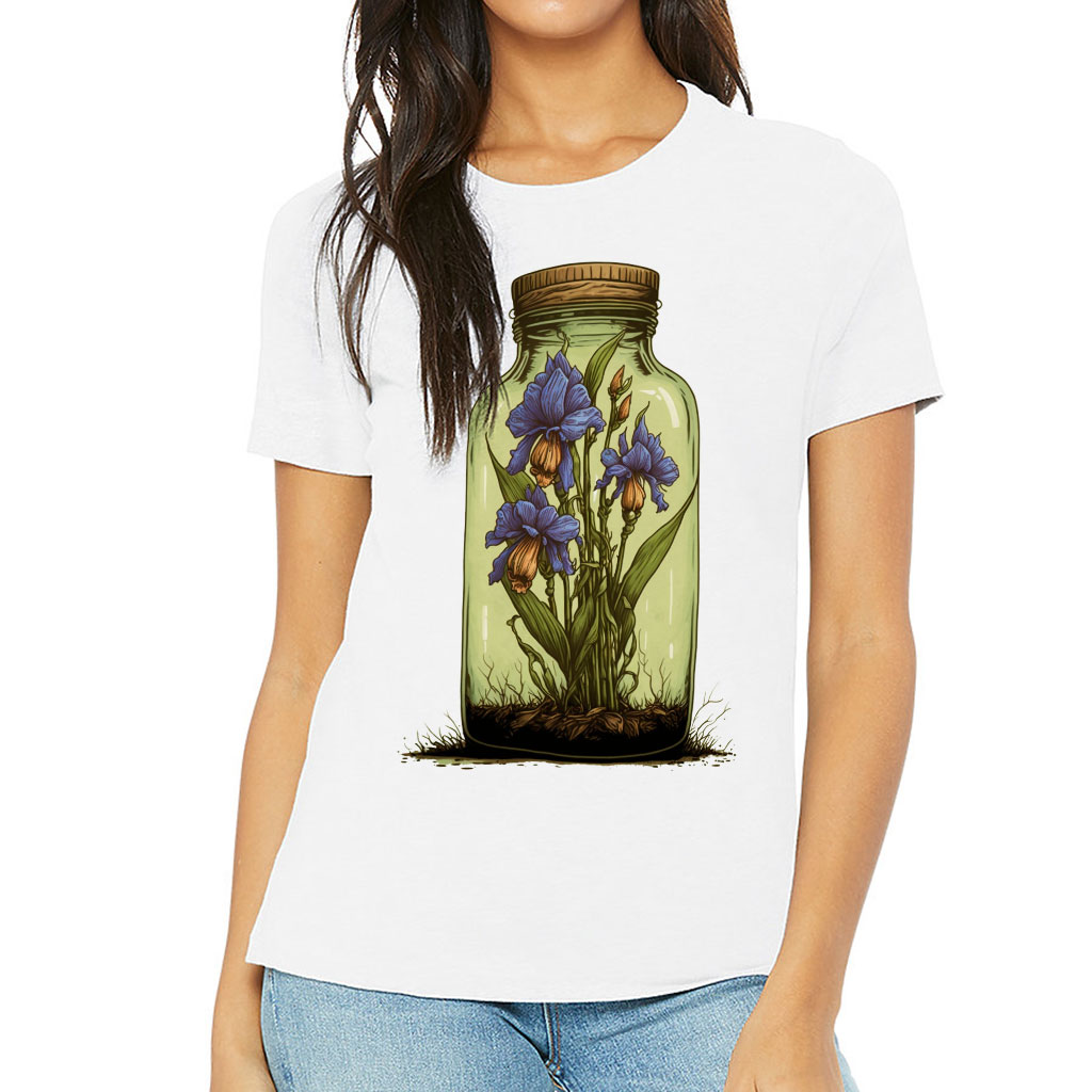 Themed Women’s T-Shirt – Flower Bottle T-Shirt – Printed Relaxed Tee