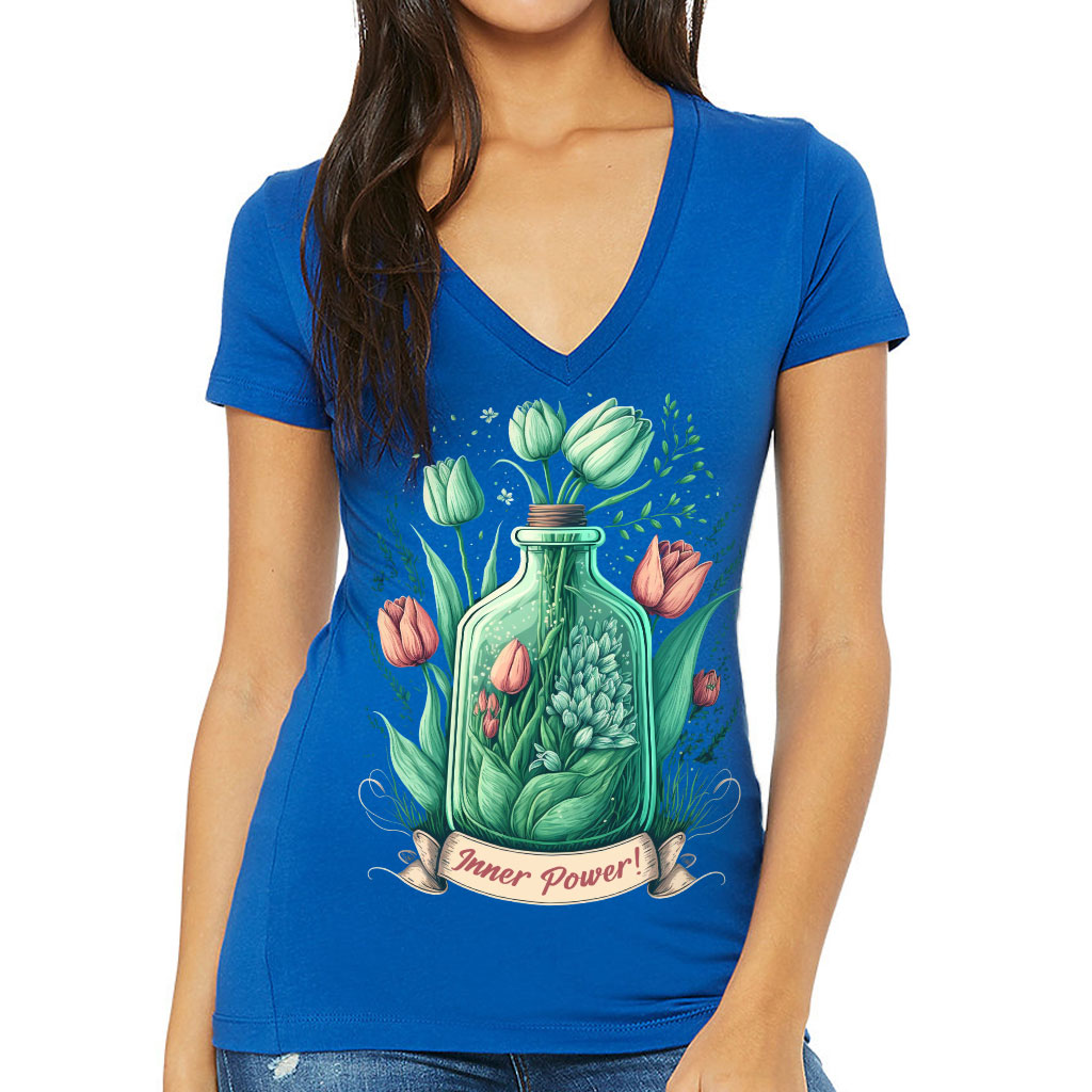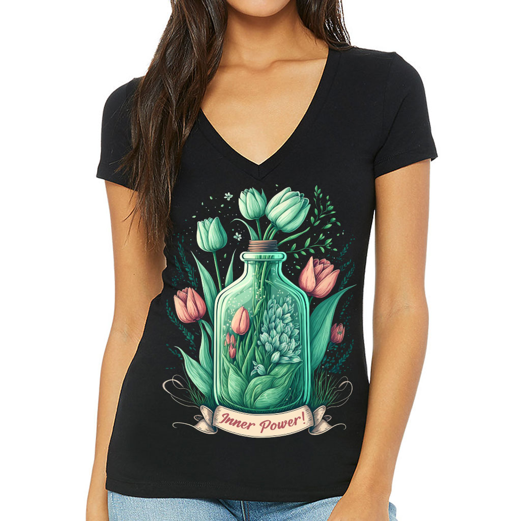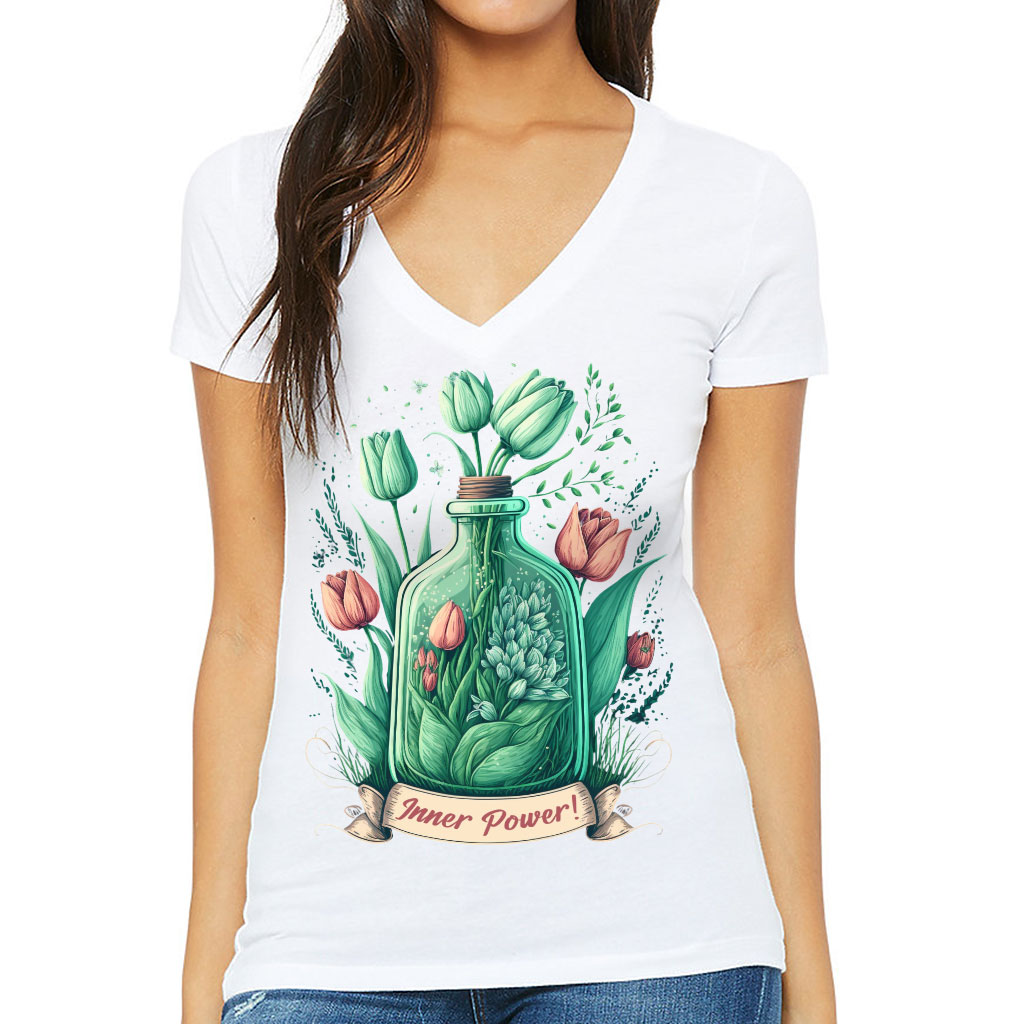 Tulip Print Women’s V-Neck T-Shirt – Inner Power V-Neck Tee – Colorful T-Shirt