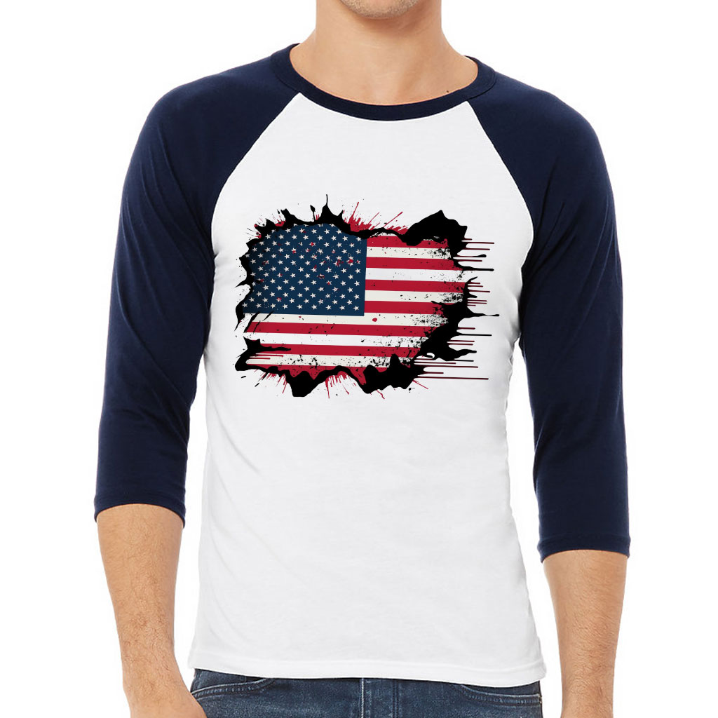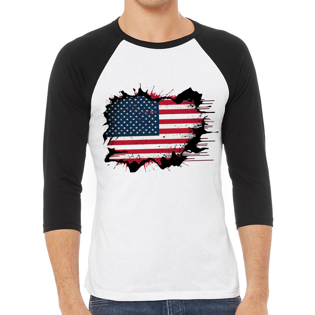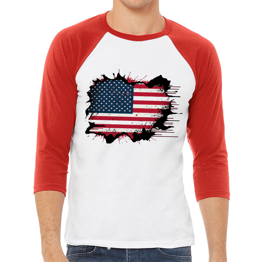 USA Flag Baseball T-Shirt – Patriotic T-Shirt – Trendy Baseball Tee
