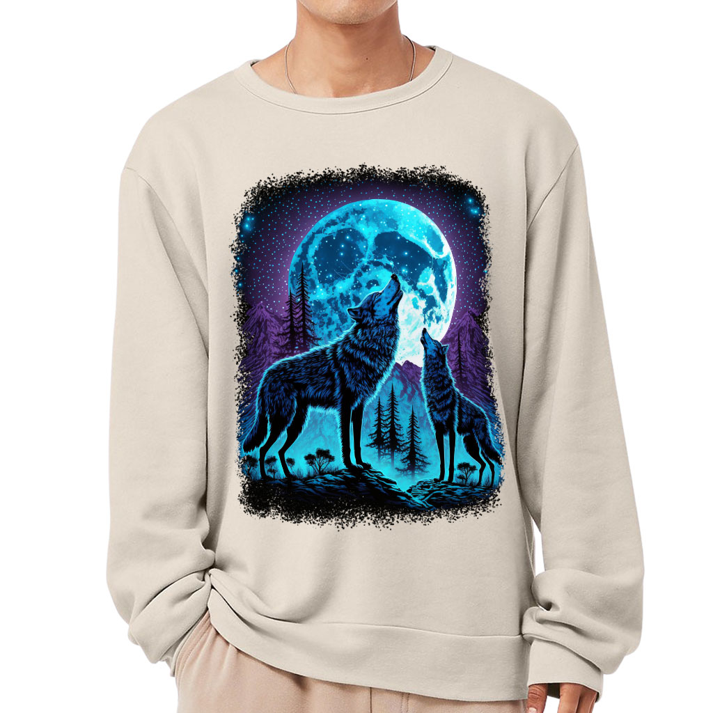 Wolf Moon Sponge Fleece Sweatshirt – Animal Classic Sweatshirt – Cool Sweatshirt