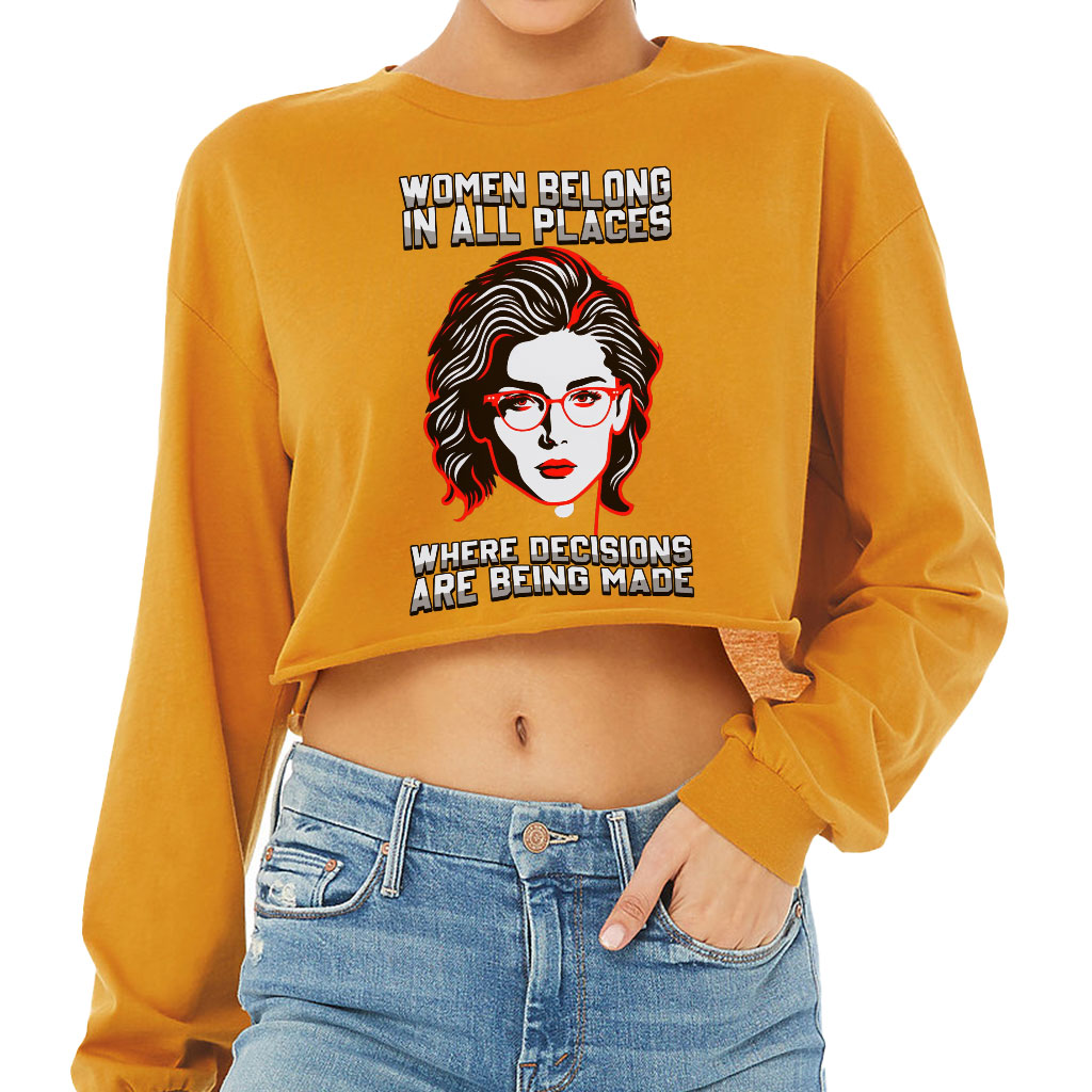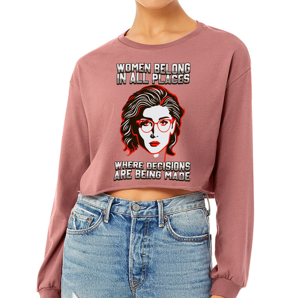 Women Belong in All Places Cropped Long Sleeve T-Shirt
