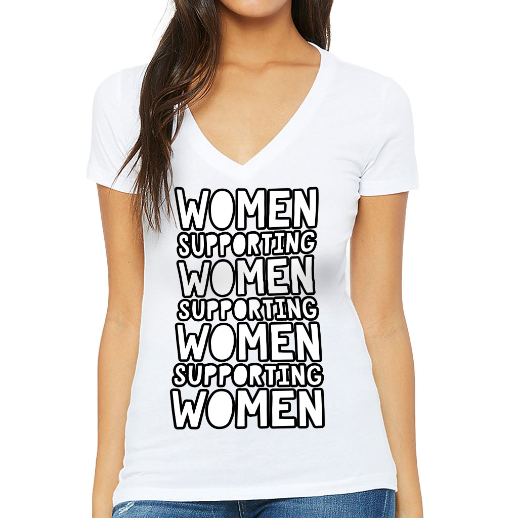 The fabric of our shirt is super soft, lightweight, breathable, and cozy. Women Supporting Women Women’s V-Neck T-Shirt features a modern feminine fit, deep V-neck, short sleeves and superior Airlume combed and ring-spun cotton.