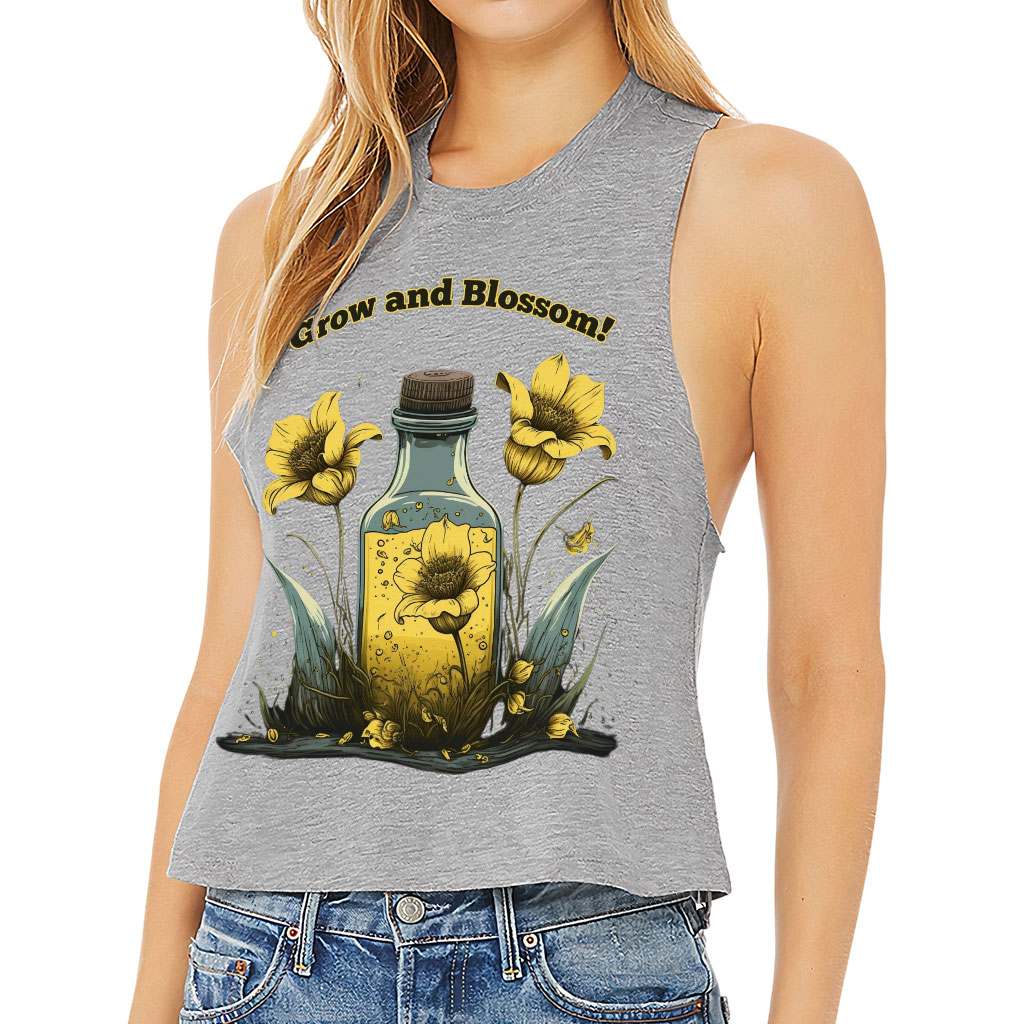Grow and Blossom matches perfectly with your favorite high-waist leggings and shorts, giving you a stylish and cute look.