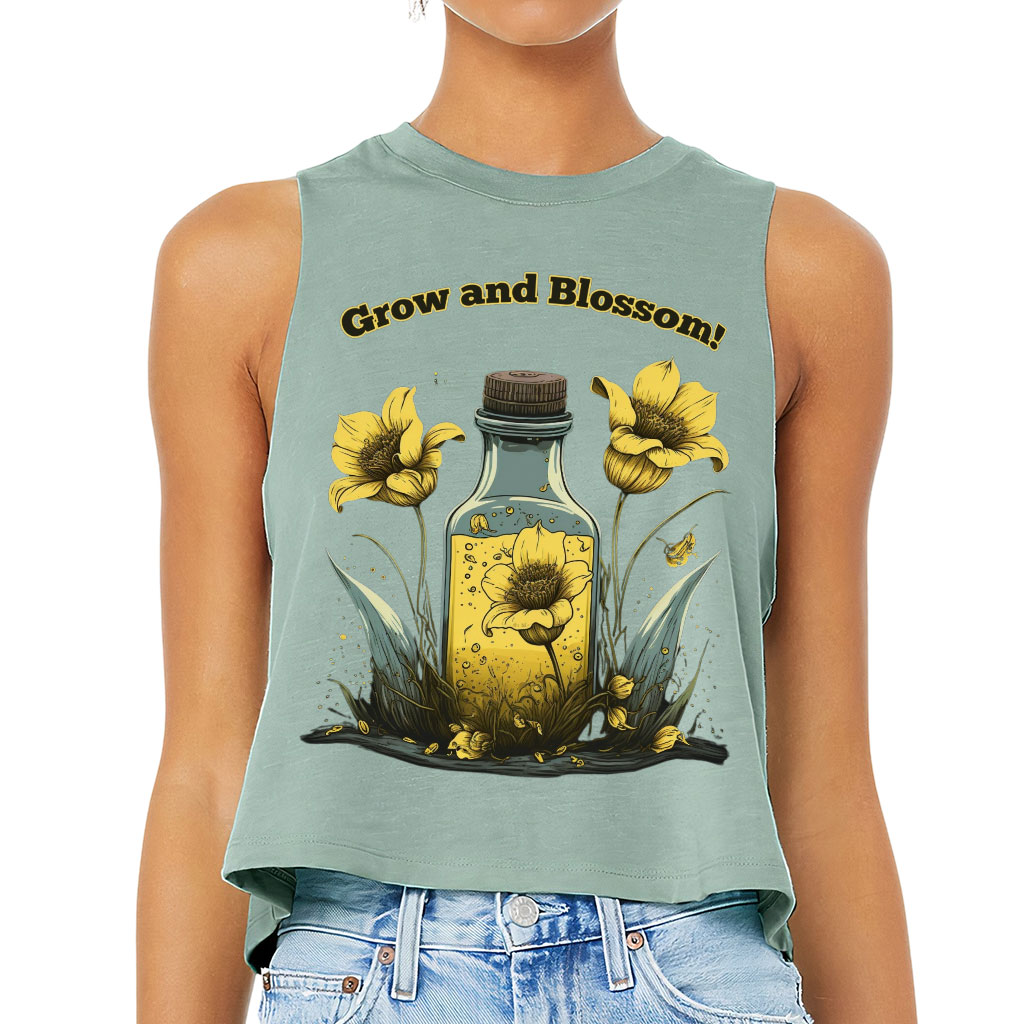 Show off your style with Grow and Blossom! This cool and comfortable top is just what your wardrobe needs. Featuring a side-seamed relaxed fit that falls softly from the shoulders to a cropped finish, it’s perfect for flaunting your figure. Brass-colored raw edge arm holes and a racerback provide an extra touch of stylish detail to this charming tank. Wear Art out and about or keep it for relaxing days at home – the perfect way to stay one step ahead in style!
